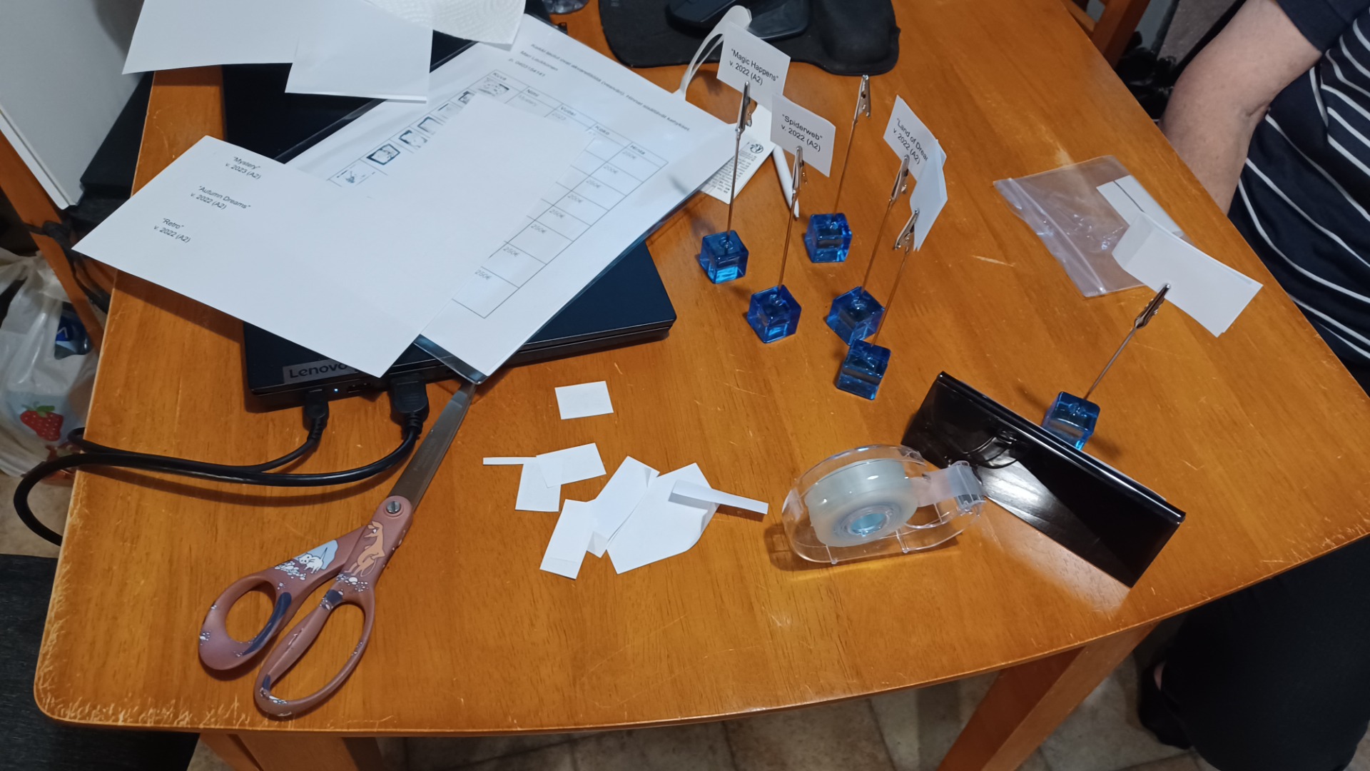 Lauantaina kahvittelun jälkeen aloin ideoimaan mitä valmisteluja olisi hyvä tehdä ja mitä teoksiani laittaisin esille. Kävin shoppailemassa ajatuksena etsiä nimikylttejä tai vastaavia, joihin saisin näkyville taulun nimen ja lisätiedot, mutta löysinkin kivoja muistilappuklipsejä! Näyttivät lopulta tosi kivoilta taulujen vieressä. Tietysti oma työnsä oli valmistella tulosteet ja tehdä taideteoslista hintojan kanssa - ja hinnoittelu se vasta olikin haastavaa!